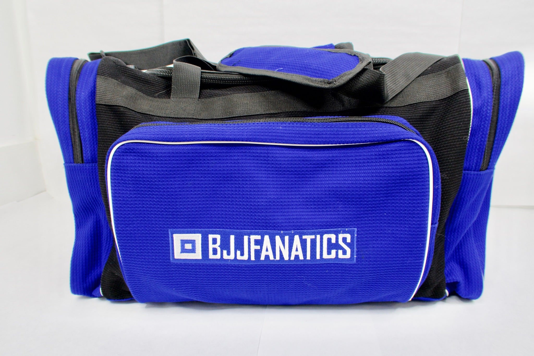 Represent BJJ Fanatics with our very own duffel back made from Gi material. This bag is high quality and extremely durable. With a flexible shape and space you can easily pack 4-5 gi's in this bag and more. Includes shoulder and hand straps.